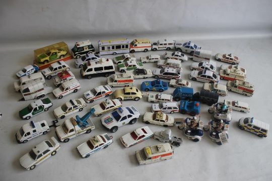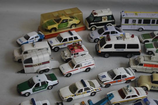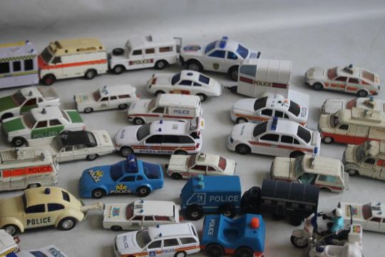 TWO TRAYS OF UNBOXED PLAYWORN POLICE VEHICLES