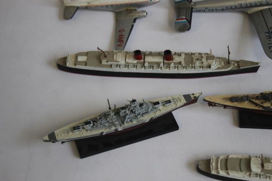 A VINTAGE CORGI LOCKHEED CONSTELATION AEROPLANE, WITH KLM DECALS, together with a Corgi Douglas Dakota, and other planes and ships