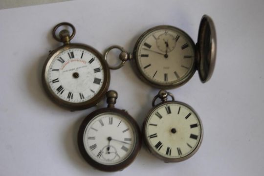 FOUR POCKET WATCHES (A/F) TO INCLUDE, a silver Hunter (4)