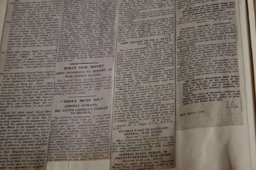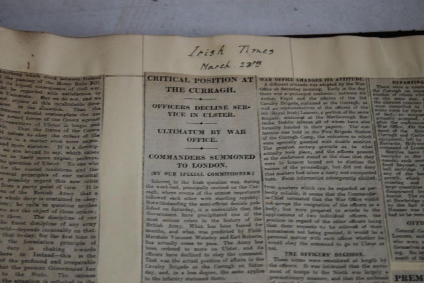MILITARY/IRELAND INTEREST PRE 1914 SCRAP BOOK, some include newspaper cuttings mainly relating to the Ulster/Anti Home rule crisis and a small quantity of loose WW1 Papers etc.