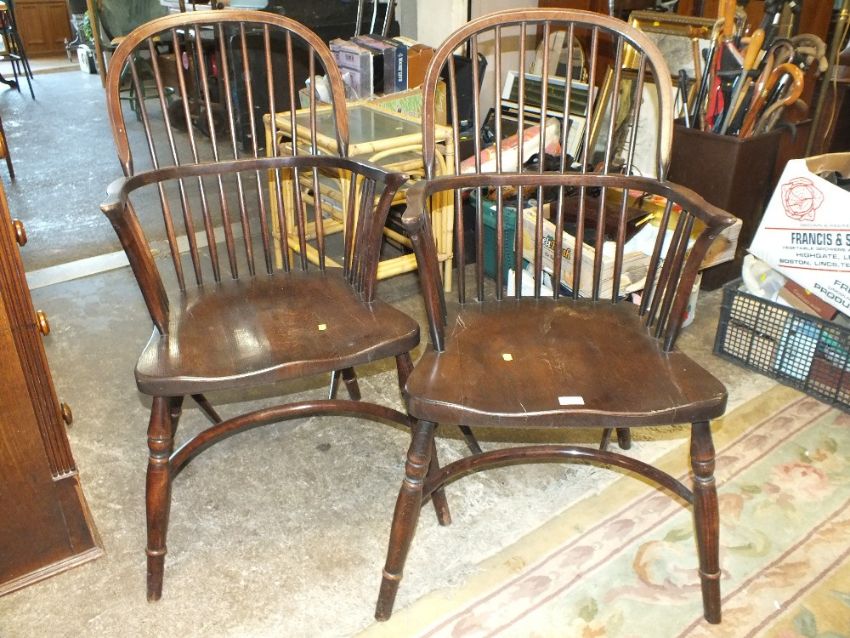 A PAIR OF REPRODUCTION HOOP BACK WINDSOR STYLE ARMCHAIRS