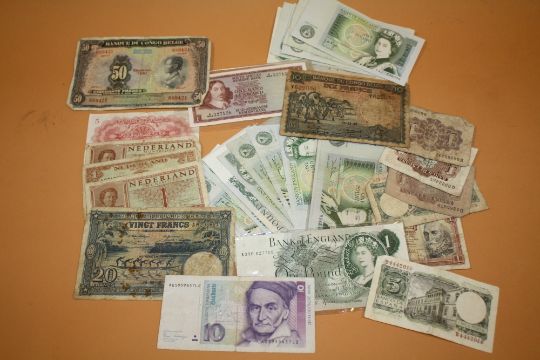 A COLLECTION OF VINTAGE BANK NOTES TO INCLUDE ONE POUND NOTES