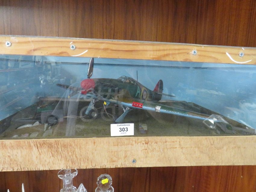 A HANDMADE MODEL OF A HURRICANE IN DISPLAY CASE