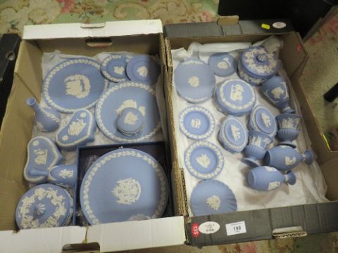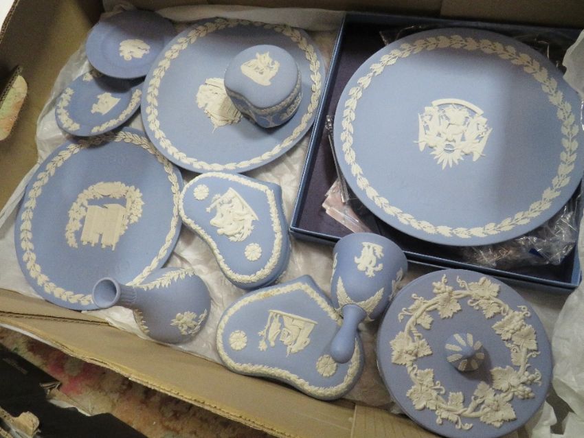 TWO TRAYS OF BLUE WEDGWOOD JASPERWARE