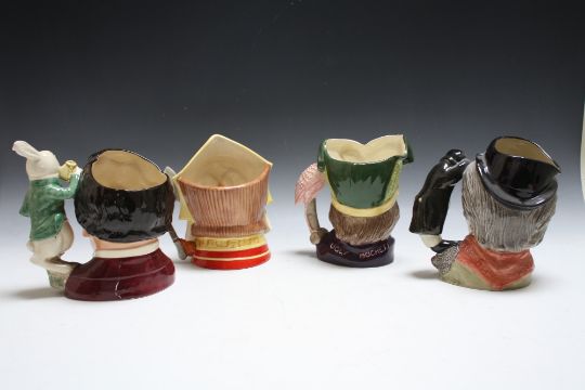 FOUR ROYAL DOULTON ALICE IN WONDERLAND CHARACTER JUGS, consisting of Lewis Carroll d7096, The Walrus & The Carpenter d6600, The Red Queen D6777 and The Ugly Duchess d6599, tallest H 19.5m
