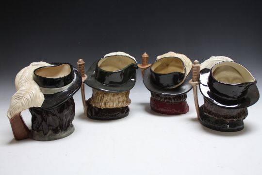 FOUR ROYAL DOULTON MUSKETEER CHARACTER JUGS, consisting of Aramis D6441, Athos D6439, Porthos D6440 and D'Artagnan D6691, H 18.5 cm