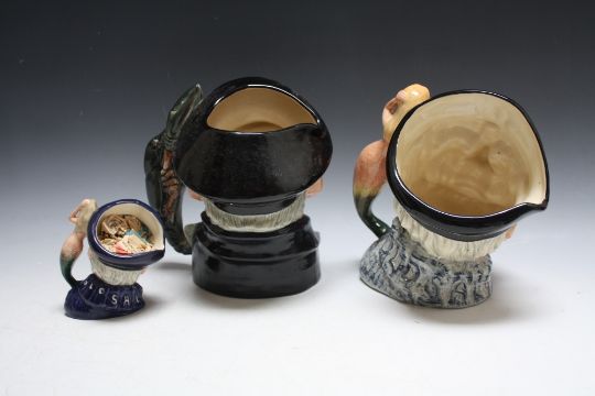 THREE ROYAL DOULTON CHARACTER JUGS, consisting of Lobster Man D6617, Old Salt medium D6554 marked as a second and large Old Salt D6782, H 19.5 cm