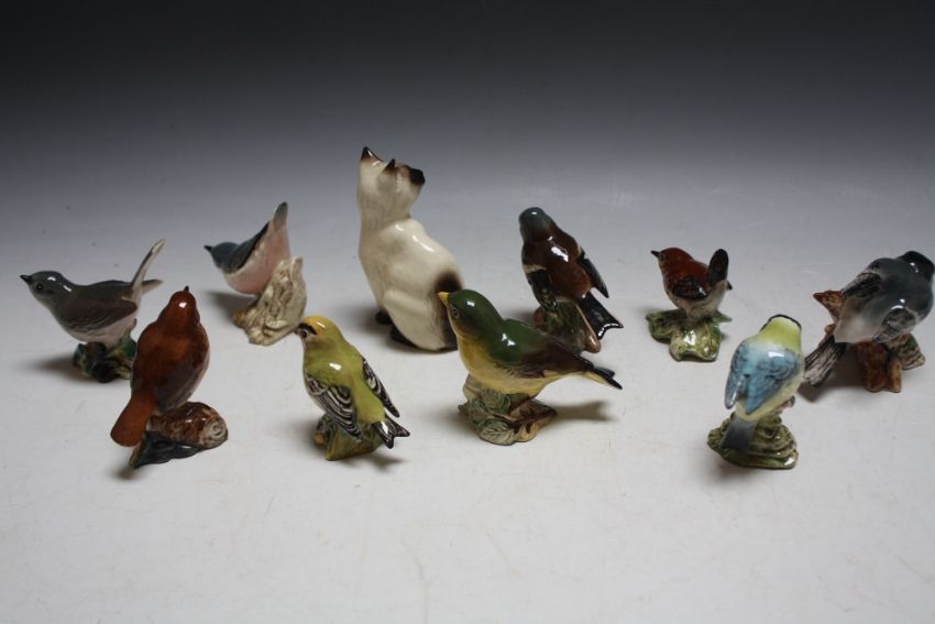 A COLLECTION OF NINE BESWICK BIRDS AND A DOULTON CAT