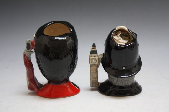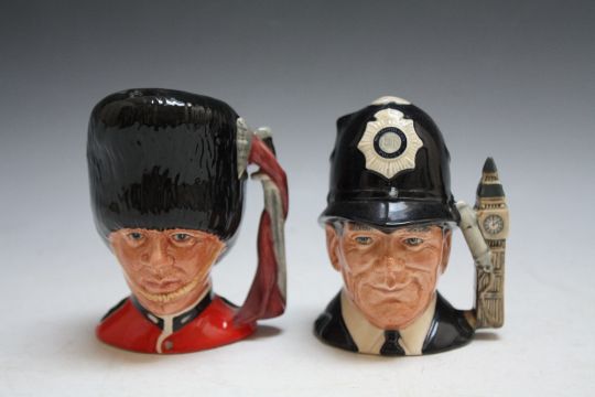 TWO ROYAL DOULTON CHARACTER JUGS - THE GUARDSMAN, and the London Bobby, H 11 cm