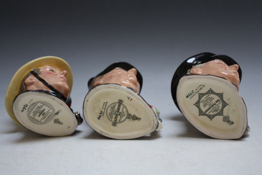 THREE LIMITED EDITION ROYAL DOULTON CHARACTER JUGS FROM THE JOURNEY THROUGH BRITAIN SERIES, consisting of the Engine Driver D6823, Fireman D6839, and Policeman D6852, h 11 cm