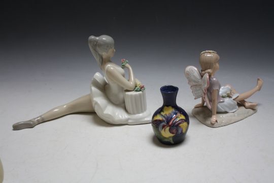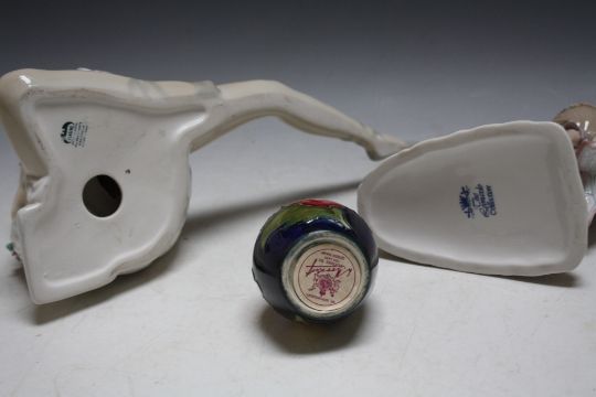 A SMALL MOORCROFT VASE, H 9.5 cm, together with two figures (3)