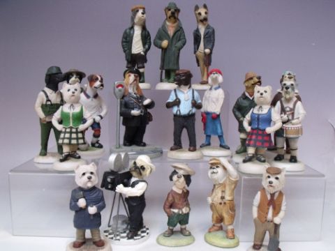 A COLLECTION OF UNBOXED ROBERT HARROP AND OTHER DOG FIGURES, various dog breeds to include Cairn Terrier, Poodle, Schnauzer Drummer and a Basset Hound Traffic Warden (20)