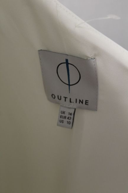 OUTLINE, a ladies one shoulder jump suit, white, size 14