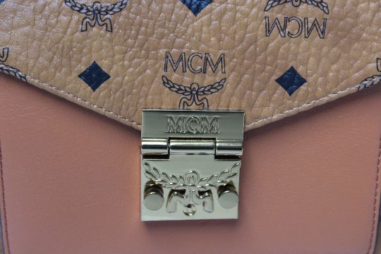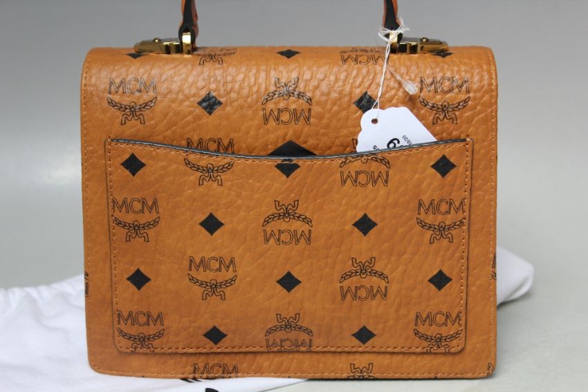 AN MCM SMALL SATCHEL STYLE BAG, buckle magnetic fastening, optional shoulder strap, W 21 cm
