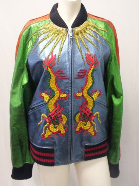 GUCCI, a unisex leather bomber jacket, multi-coloured with embroidered and bead work embellishment