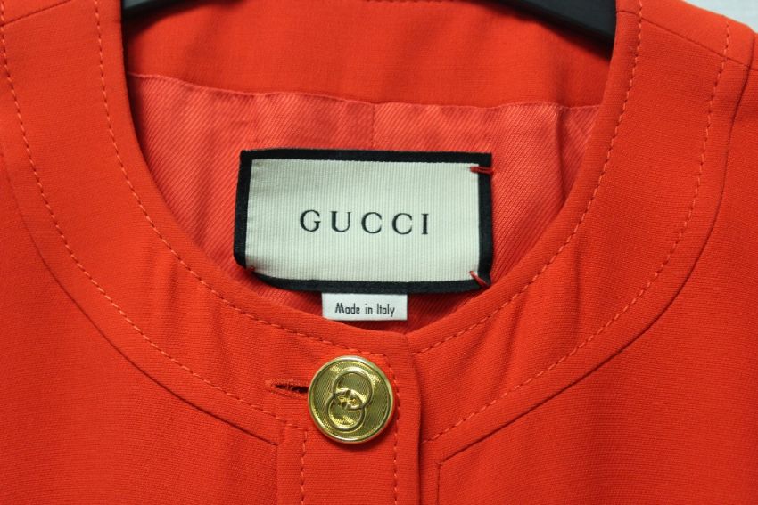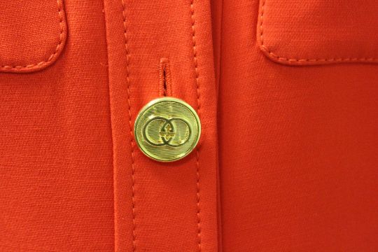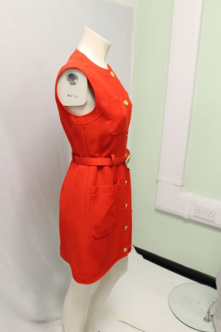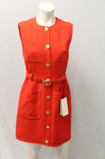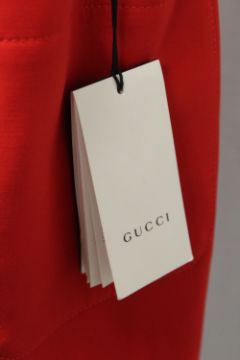 GUCCI, a ladies red pinafore dress, wool / silk blend, approx size 10