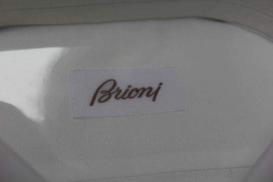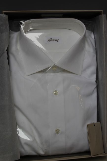 A BOXED BRIONI GENTLEMANS WHITE SHIRT, size 42