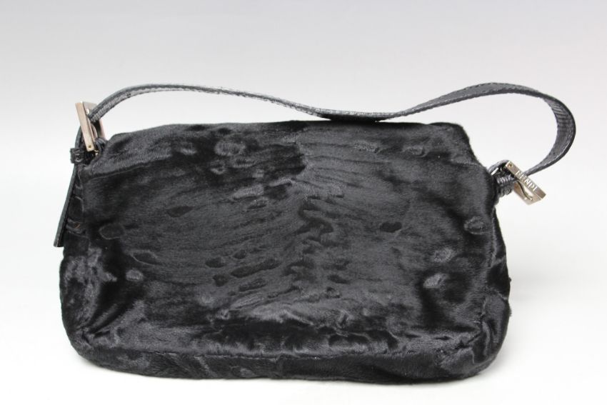 A FENDI VELVET EVENING BAG, with flat leather strap, decorative stud fastening, dust bag, H 17 cm, W 27 cm S/D