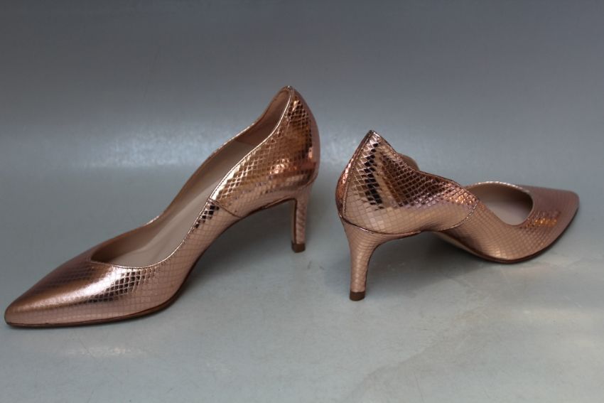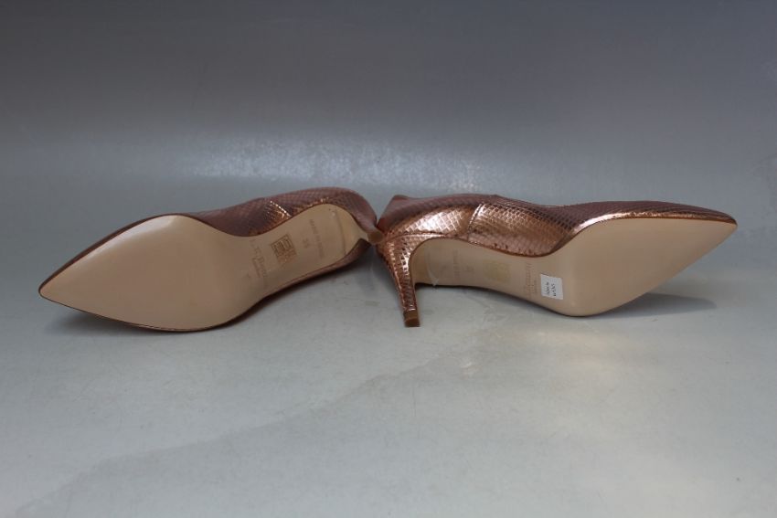 A PAIR OF L.K. BENNETT ROSE GOLD SNAKE EFFECT COURT SHOES, size EU 35