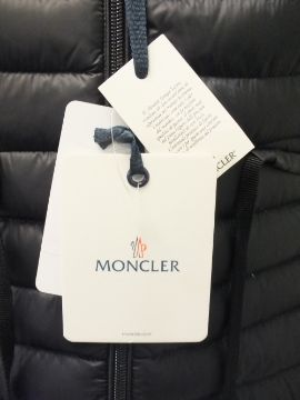 MONCLER, a ladies mid-length black puffa jacket, size 0 / UK 6