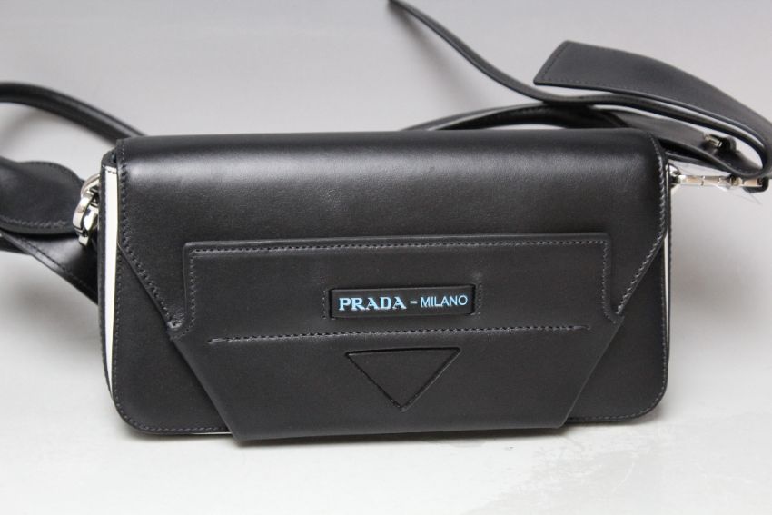 A PRADA BLACK LEATHER MILANO LADIES HANDBAG, with magnetic fastening, W 26 cm