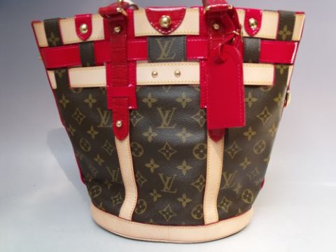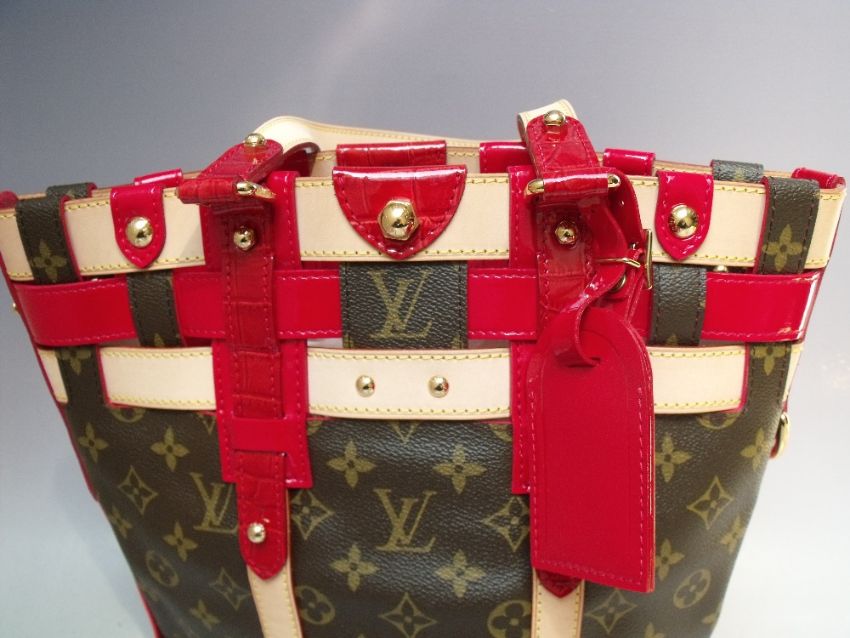 A LOUIS VUITTON RUBIS SALINA PM BAG, with double top handles, natural leather trim and red patent crocodile embossed leather, original outer cloth bag, H 29 cm, W 34 cm