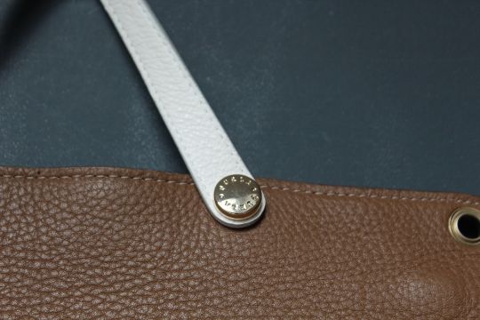A FURLA SATCHEL STYLE HANDBAG WITH ADDITIONAL SHOULDER STRAP, red leather with cream and brown detailing, zip fastening, dust bag, H 26 cm, W 36 cm