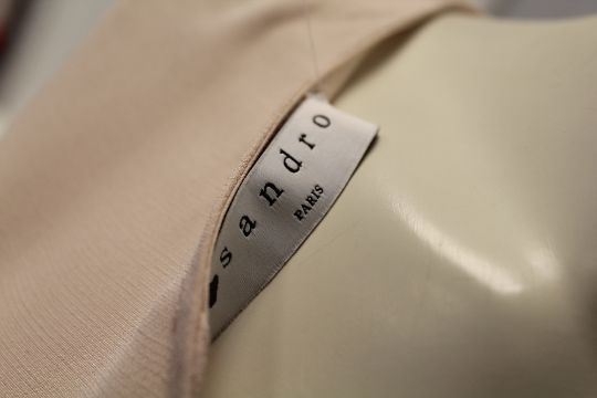 SANDRO PARIS, a ladies mid sleeve dress in nude, size small S/D