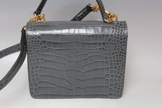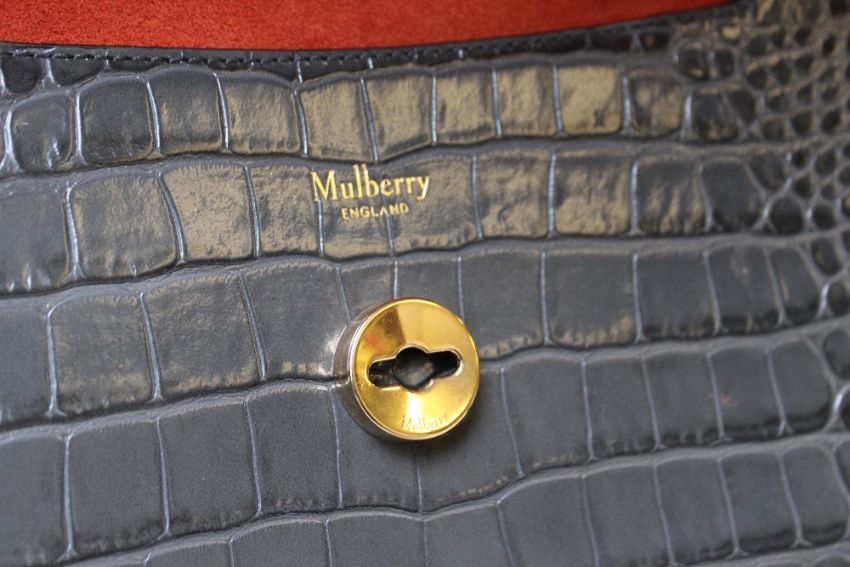A LADIES MULBERRY MOCK CROCODILE SKIN HANDBAG, twist clasp, W 22.5 cm