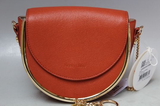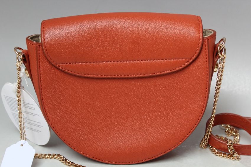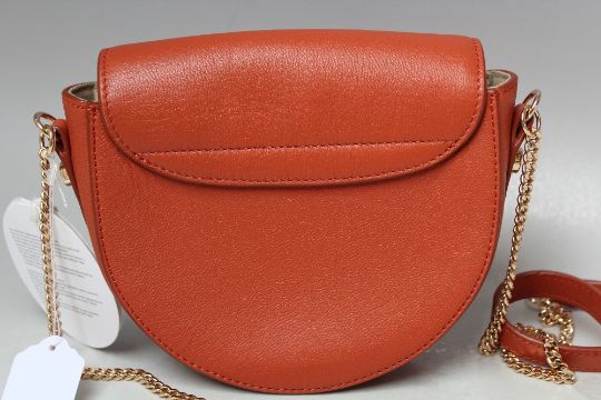 A SEE BY CHLOE MARA BRICK RED CLUTCH/EVENING BAG, leather and chain shoulder strap, metallic stud fastening