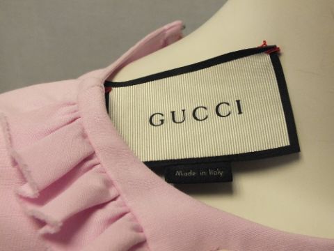 GUCCI, a ladies pink dress with ruffle placket