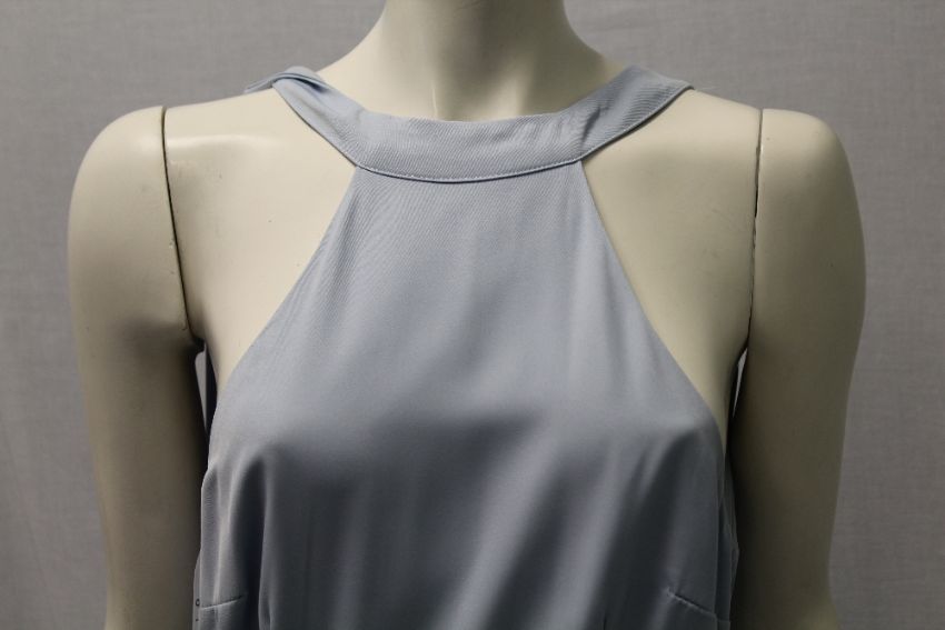JARLO, a ladies long tie-back dress, pale blue, size 8