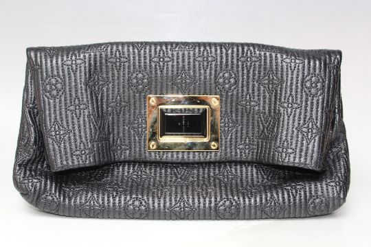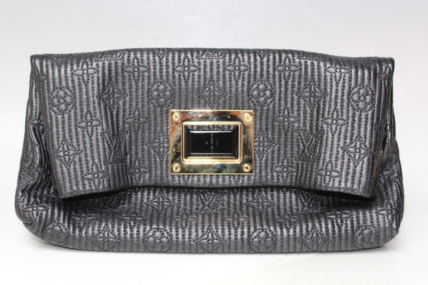 A LOUIS VUITTON CALFSKIN MONOGRAM ALTAIR CLUTCH BAG, with a black and gold-tone twist lock, dust bag, H 17 cm, L 29 cm