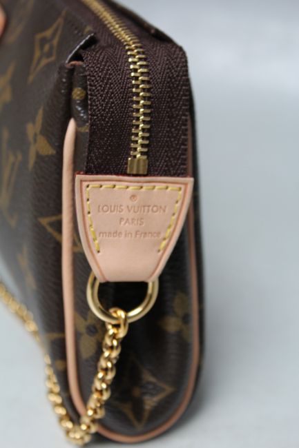 A SMALL LOUIS VUITTON MONOGRAM POCHETTE STYLE SHOULDER BAG, with metal chain link handle and detachable leather shoulder strap, Louis Vuitton plaque to one side, H 13 cm, W 26 cm