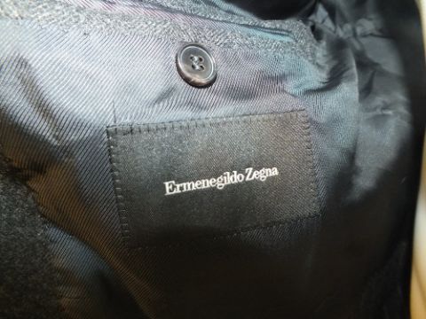 ERMENEGILDO ZEGNA, a mens charcoal grey tailored coat, size L