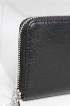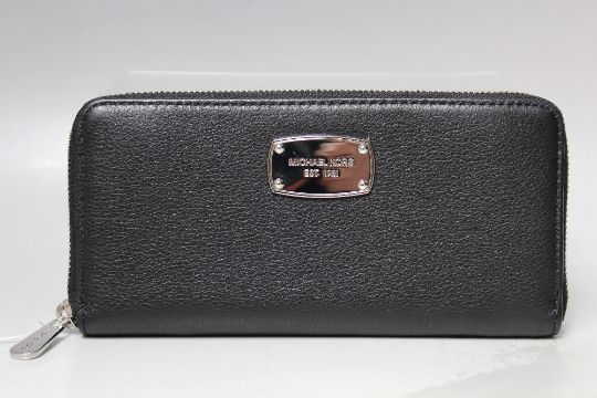 A MICHAEL KORS BLACK LEATHER LADIES WALLET, subtle textured effect finish, note compartments, zip pocket, card slots and all around zip fastening, W 22 cm, H 10.5 cm, D 2.5 cm