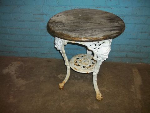 AN ANTIQUE BRTTANIA CAST IRON PUB TABLE BY GASKELL & CHAMBERS LTD.