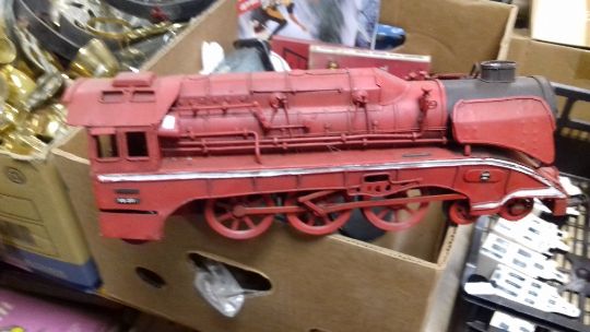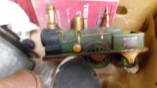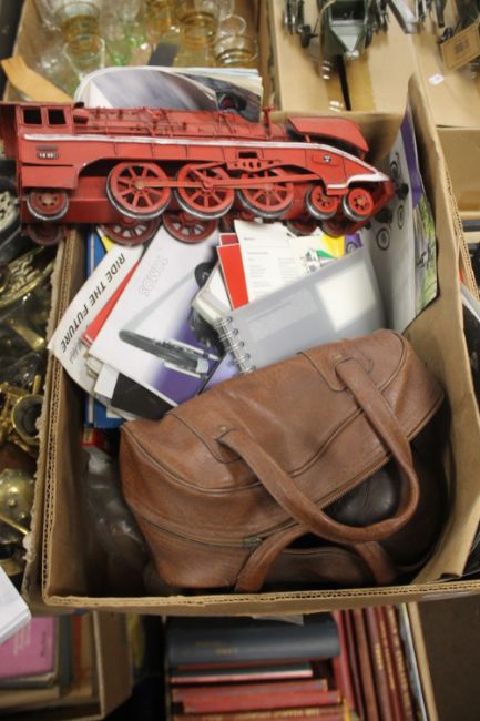 A TRAY OF COLLECTABLES TO INCLUDE BOWLS, TRAINS, BOOKS ETC. (TRAY NOT INCLUDED)