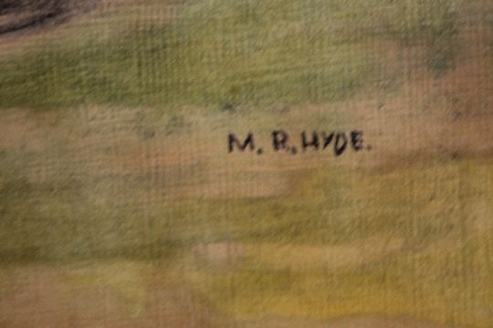 A GILT FRAMED OIL ON BOARD DEPICTING A HORSE AND JOCKEY SIGNED M. R. HYDE