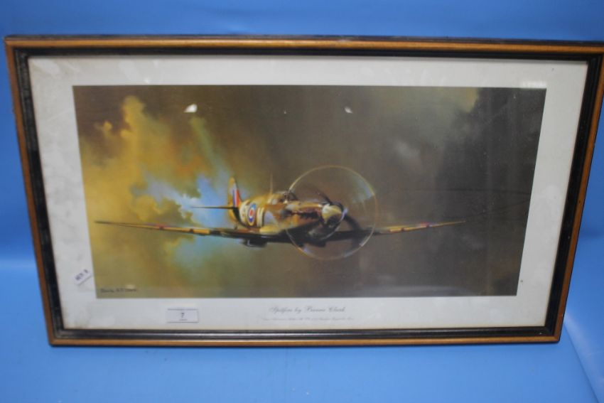 A FRAMED AND GLAZED PRINT OF A SPITFIRE BY BARRIE CLARK