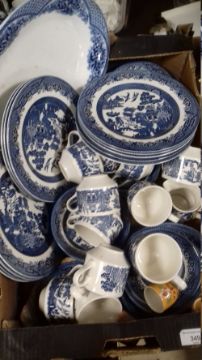 A TRAY OF BLUE & WHITE TEA & DINNERWARE (NOT INCLUDING TRAY)