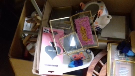 A QUANTITY OF ASSORTED MAINLY NEW ITEMS TO INCLUDE COAT HANGERS, EAR MUFFS, PICTURE FRAMES ETC.