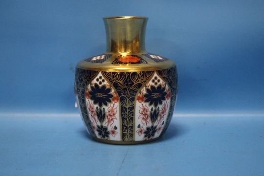A ROYAL CROWN DERBY IMARI PATTERN VASE, APPROX. 12 CM HIGH Condition Report:  The vase has no damage, chips, cracks or repairs that we can find