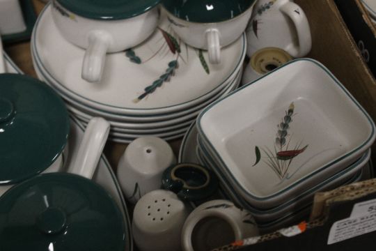 TWO TRAYS OF DENBY 'GREEN WHEAT' TEA & DINNERWARE (TRAYS NOT INCLUDED)