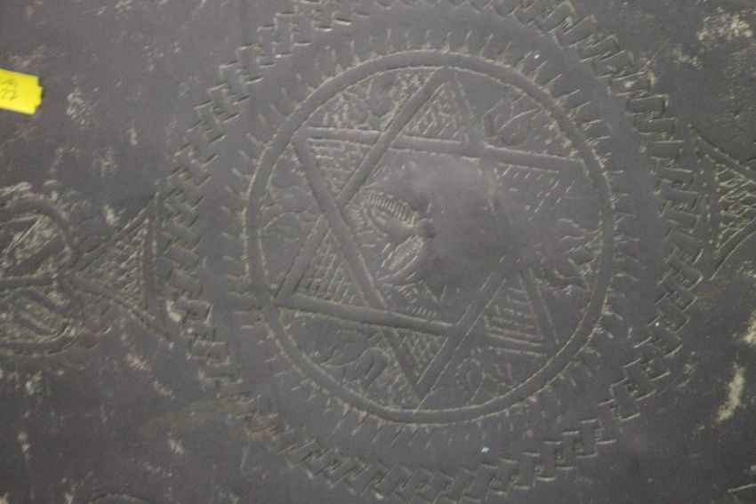 AN ANTIQUE OTTOMAN / ISLAMIC DECORATED METAL TRAY, D 69 CM