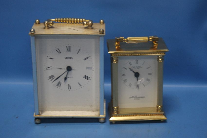 A TWO THOUSAND MILLENIUM CARRIAGE CLOCK TOGETHER WITH ANOTHER (2)