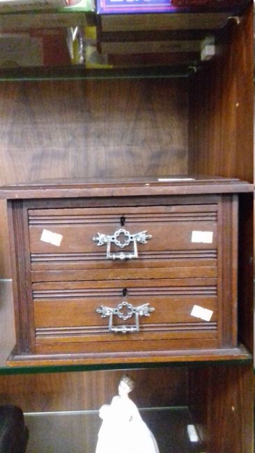 AN EDWARDIAN MINIATURE TWO DRAWER CABINET