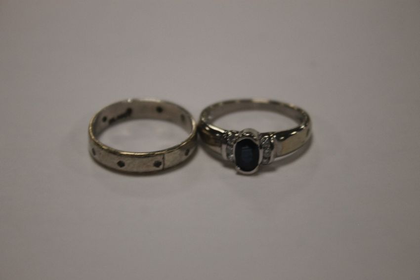 A LADIES 9 CT WHITE GOLD DRESS RING ALONG WITH A SILVER AND GOLD EXAMPLE (2)