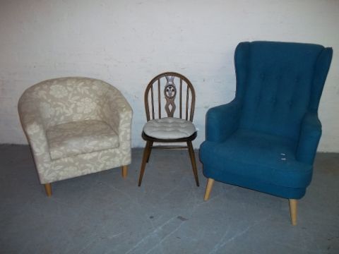 TWO MODERN EASY CHAIRS AND A DINING CHAIR (3)