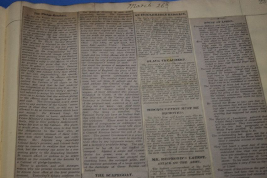 MILITARY/IRELAND INTEREST PRE 1914 SCRAP BOOK, some include newspaper cuttings mainly relating to the Ulster/Anti Home rule crisis and a small quantity of loose WW1 Papers etc.